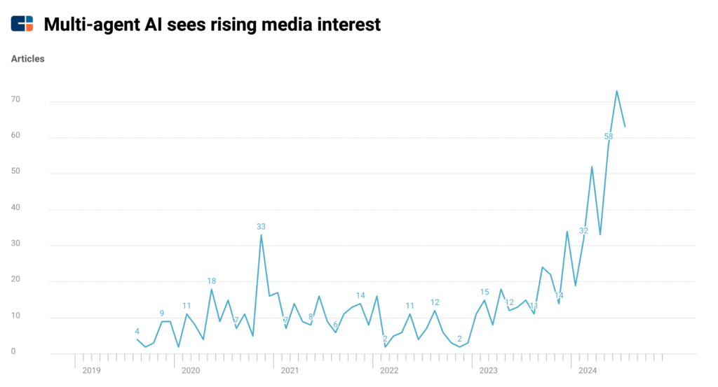 Source: CB Insights — Platform search of news articles mentioning multi-agent AI