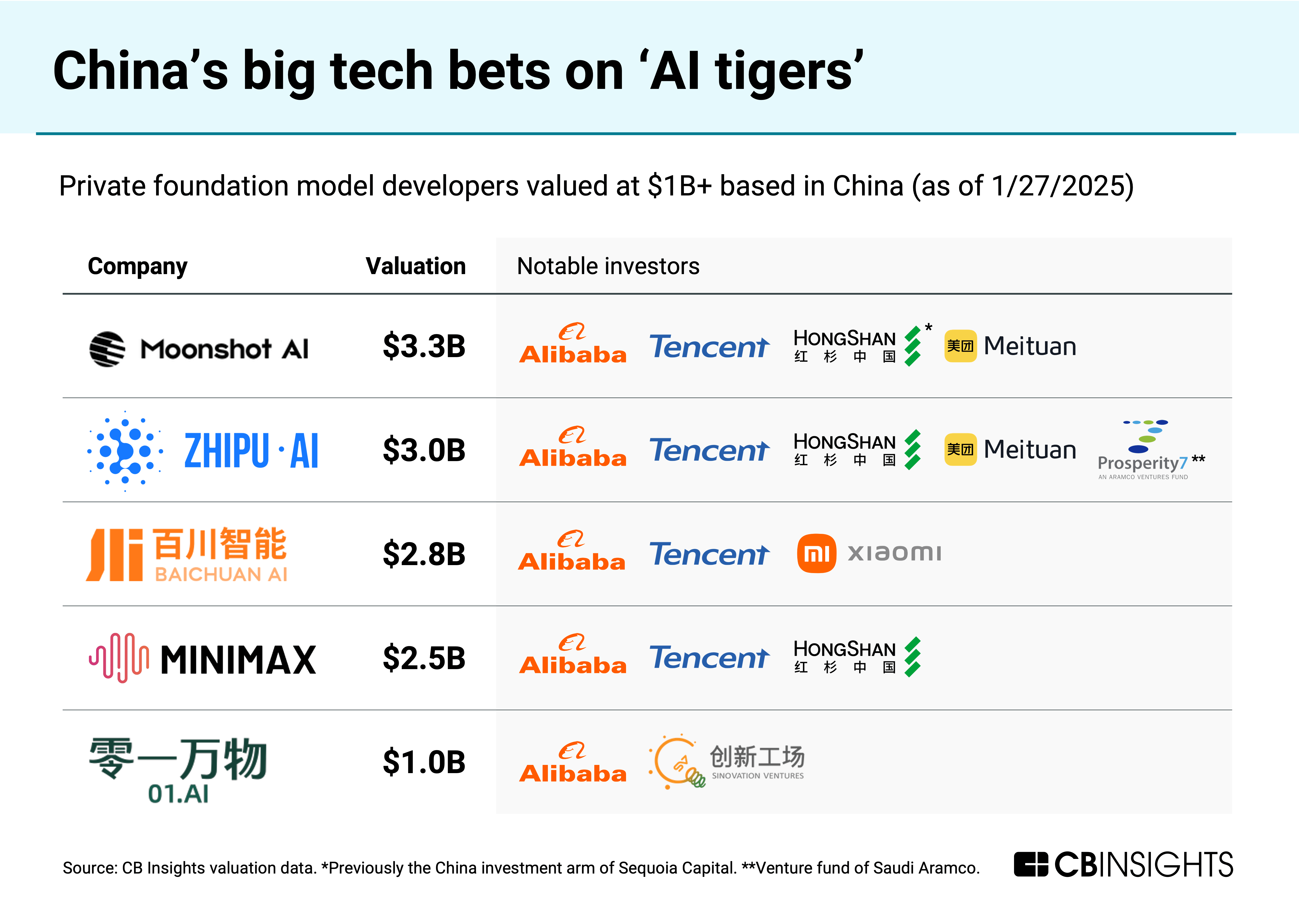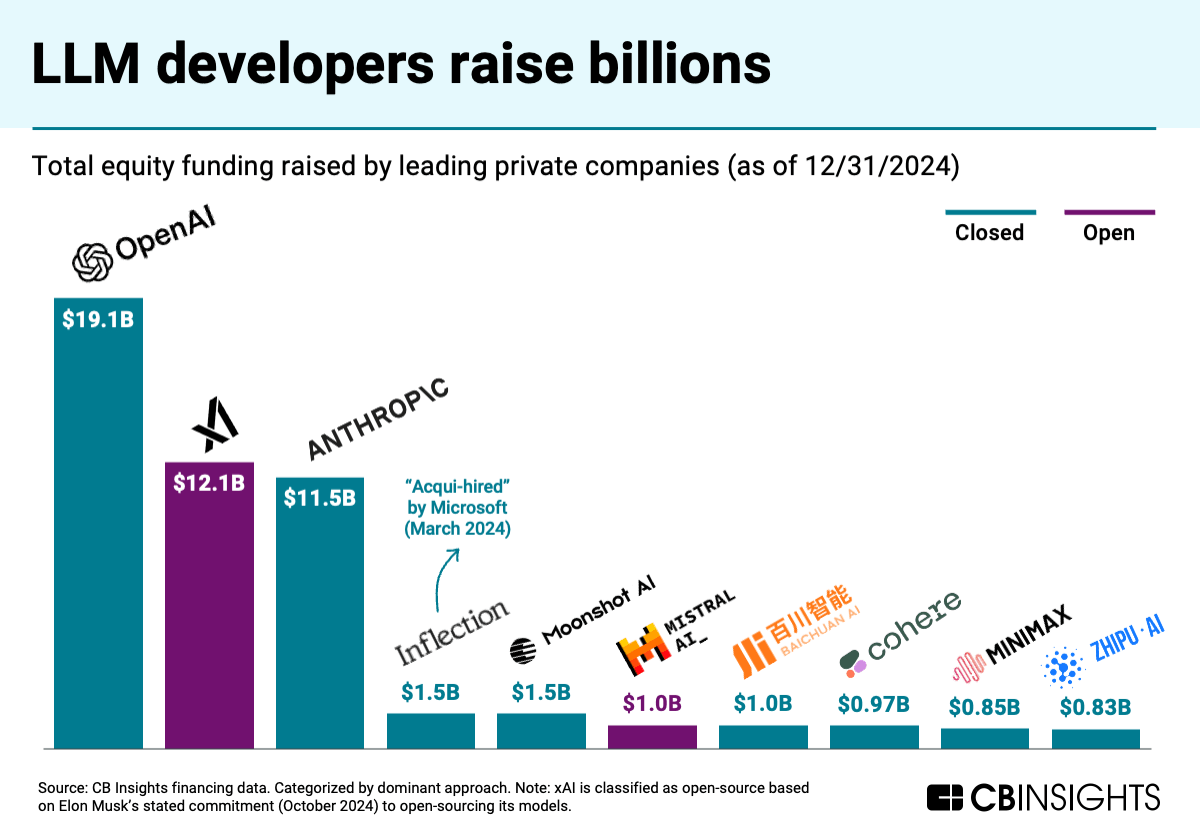 Other companies to watch in China include the “AI tigers” Moonshot AI, Zhipu AI, Baichuan AI, MiniMax, and 01.AI — all of which have nabbed $1B+ valuations backed by China’s big tech companies.