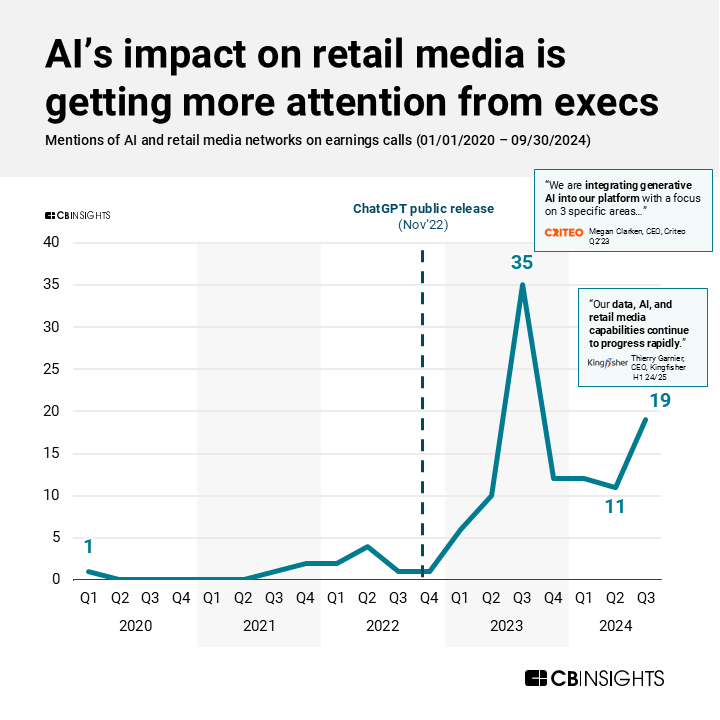 In this brief, we use CB Insights’ earnings transcripts, funding data, and instant insights capabilities to understand retail and digital media’s next evolution.