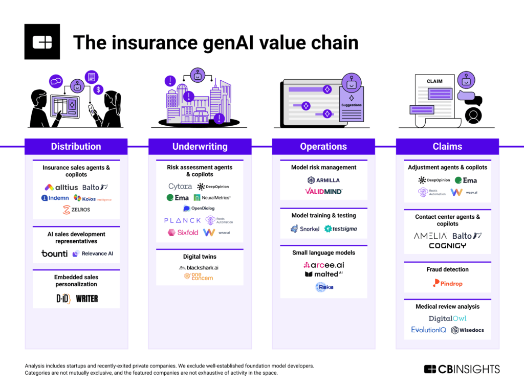 Startups also recognize this opportunity and are moving quickly to develop and deploy genAI in insurance-specific applications.