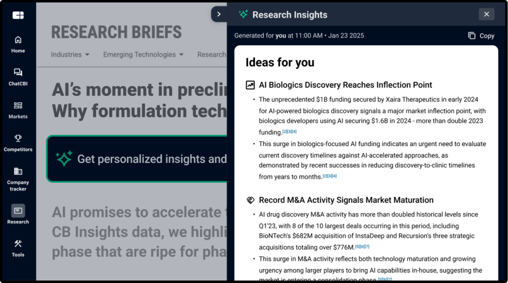 Now, our AI super analyst can turn every research report we write into personal, actionable intelligence just for you. Insights are generated based on your strategy, competitors, and the companies you care about. You’ve never moved faster.