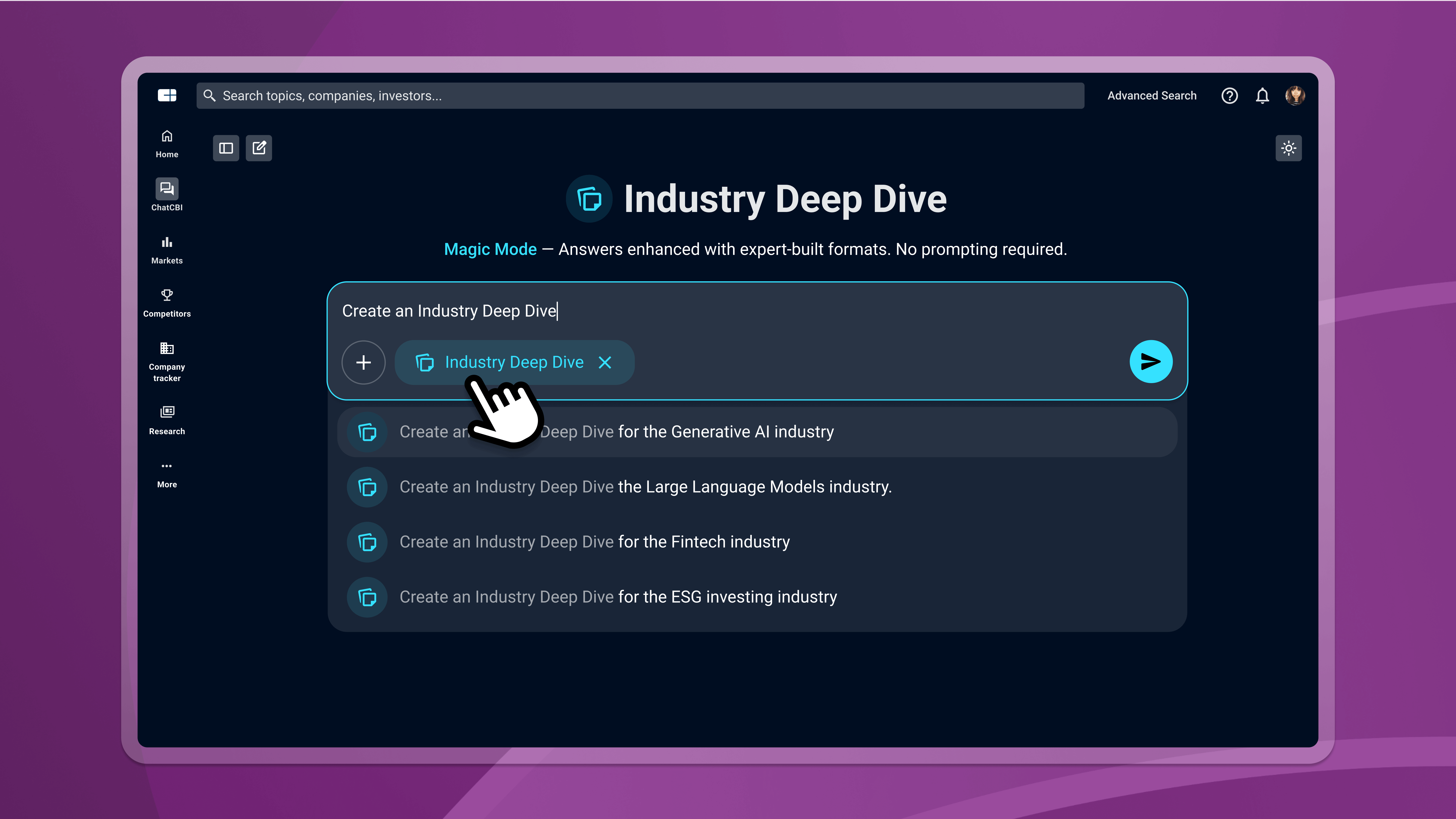 Three new Magic Modes for ChatCBI™ give you expert deliverables at the click of a button. Plus dramatically expanded data coverage you won’t find anywhere else.