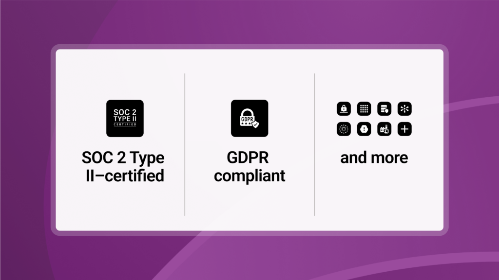 SOC 2, GDPR, and more. Our products are built from the ground up to meet the highest standards for security, data privacy, compliance, and control. That’s why we are trusted by the world’s leading regulated companies and government clients.