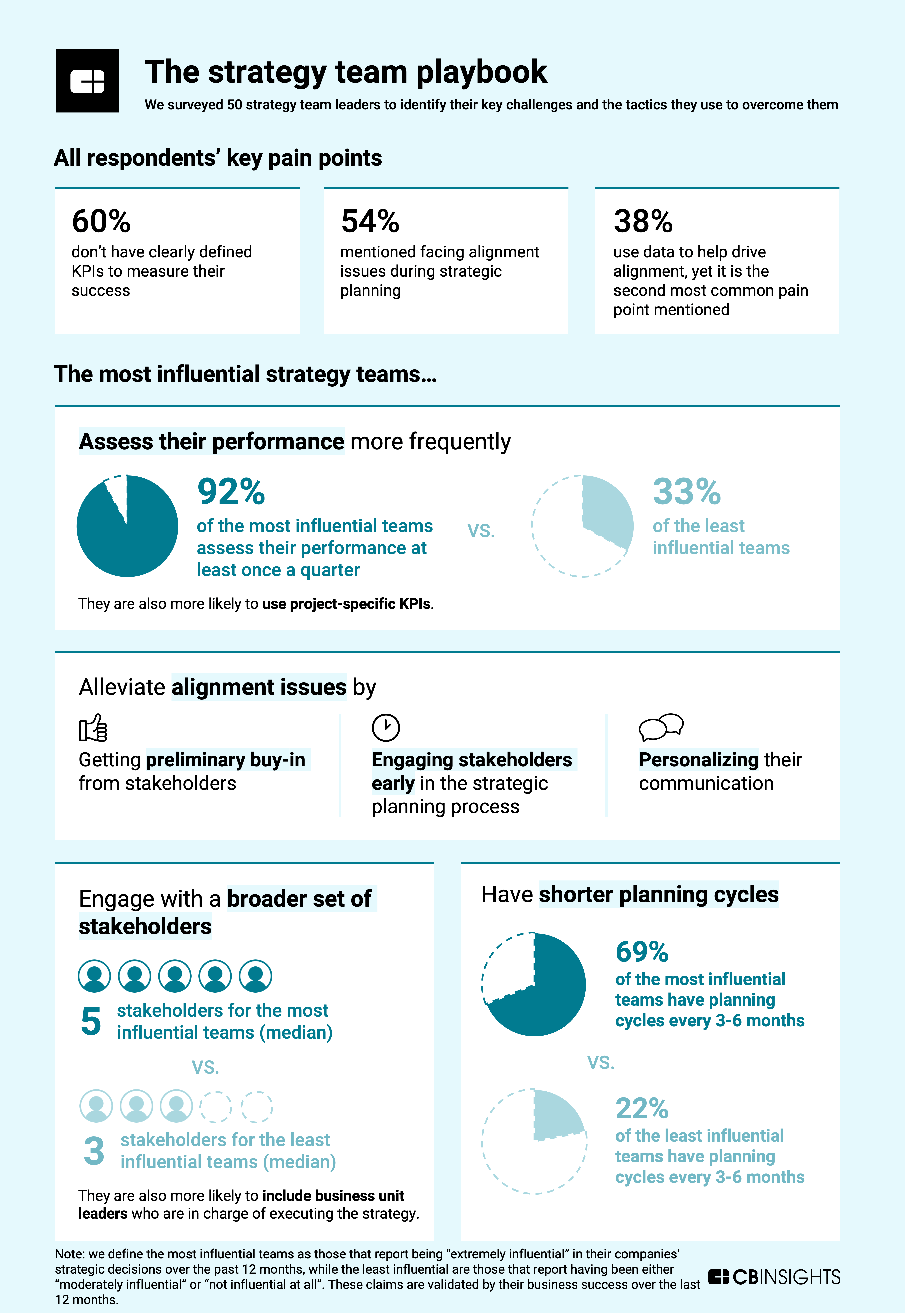 Download the full report to delve into the most common pain points faced by strategy teams, the tactics used by the most influential teams to improve strategic planning, and what challenges still remain unaddressed.