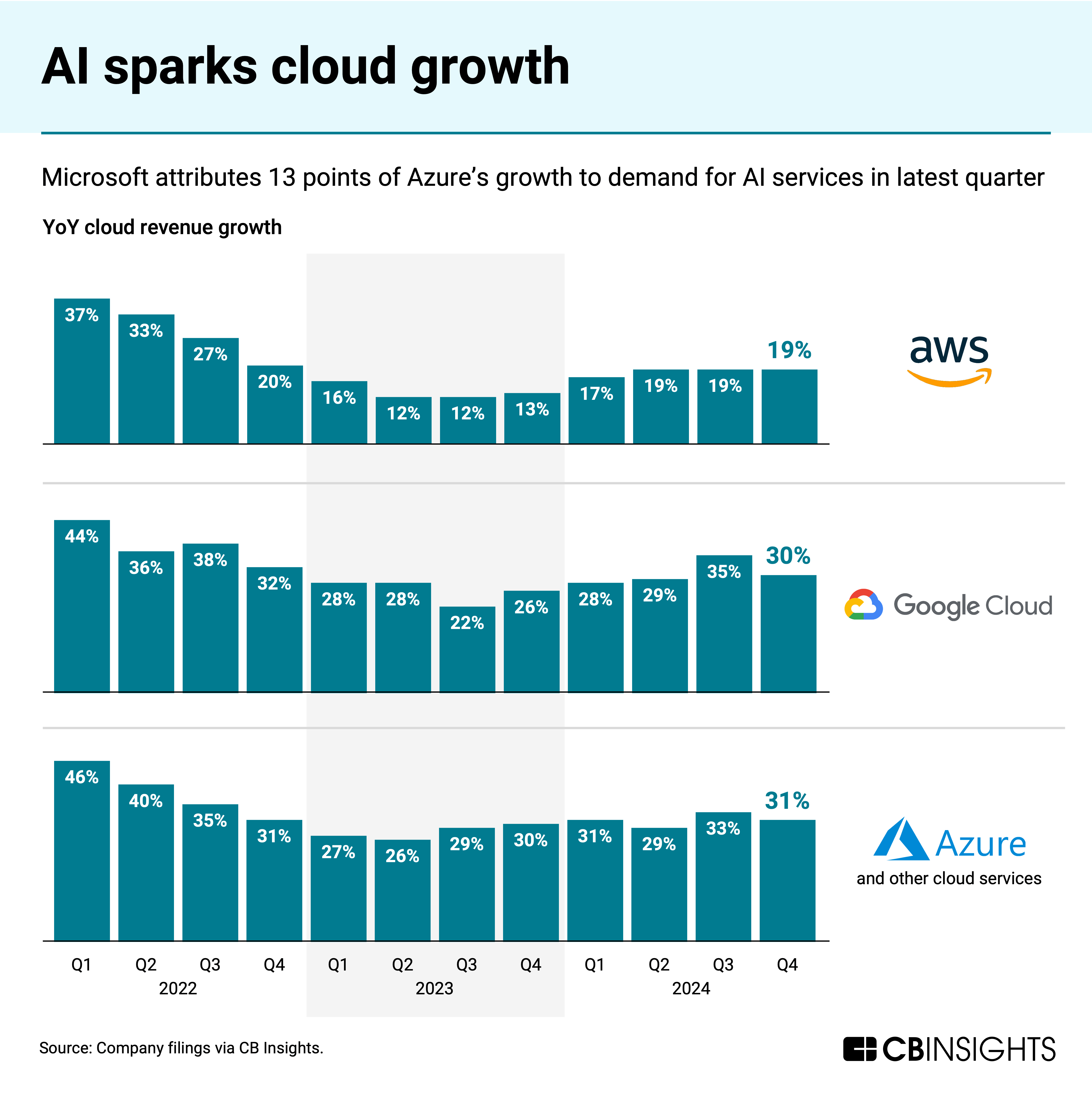 AI sales have helped boost revenue growth for Microsoft’s Azure and cloud services arm, which averaged 31% quarterly growth in 2024, up from 28% in 2023.