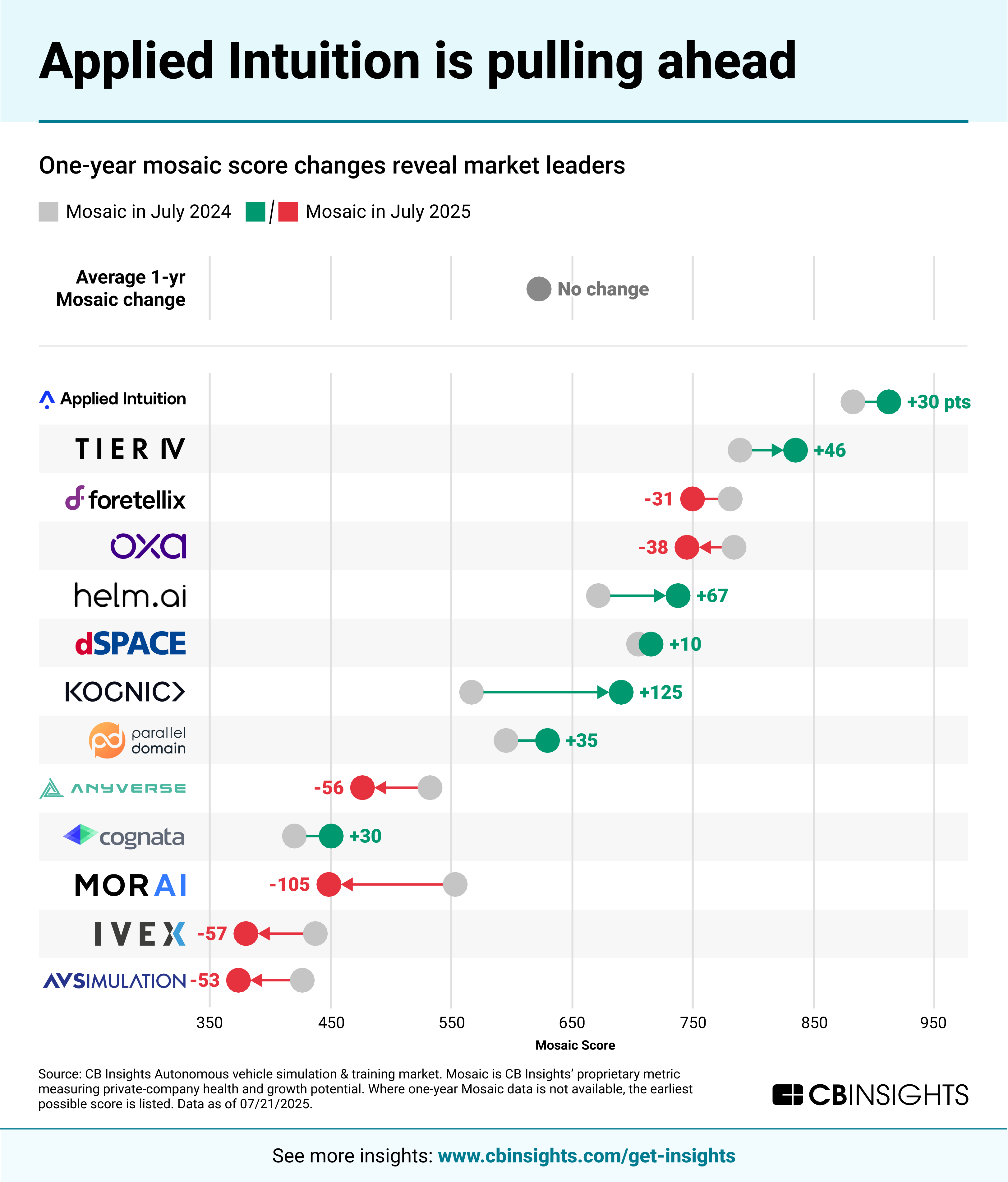 Autonomous vehicle revival is fueling demand for training and simulation solutions — here are the companies gaining momentum https://www.cbinsights.com/research/autonomous-vehicle-training-simulation-momentum-companies/ Mon, 28 Jul 2025 18:35:06 +0000 https://www.cbinsights.com/research/?p=174520 Autonomous vehicles are booming again, led by robotaxi pioneers like Waymo. Their commercial breakthroughs are sparking an industry-wide race, with Tesla and Uber scrambling to catch up — Uber recently partnered with Lucid and Nuro to launch its own robotaxi …
