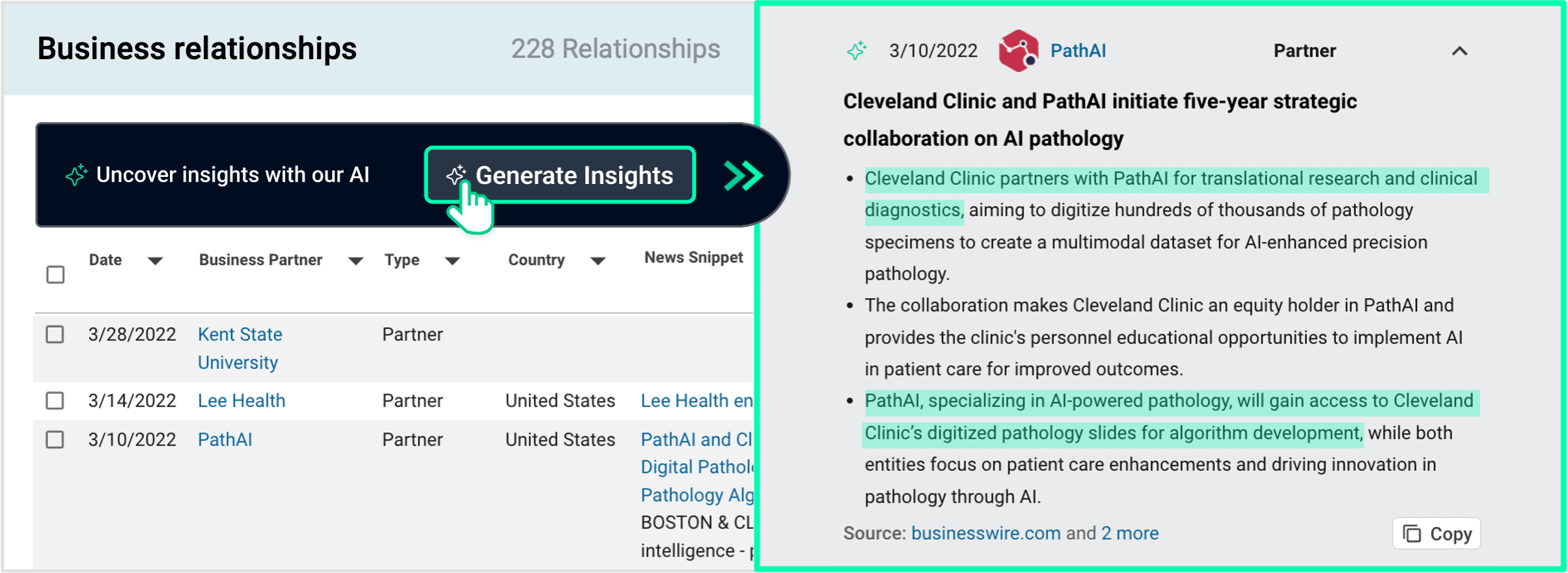 Source: CB Insights — Cleveland Clinic Business Relationship Insights