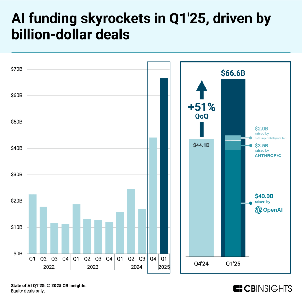 AI funding reaches record $66.6B in Q1’25 as industry incumbents secure mega-rounds