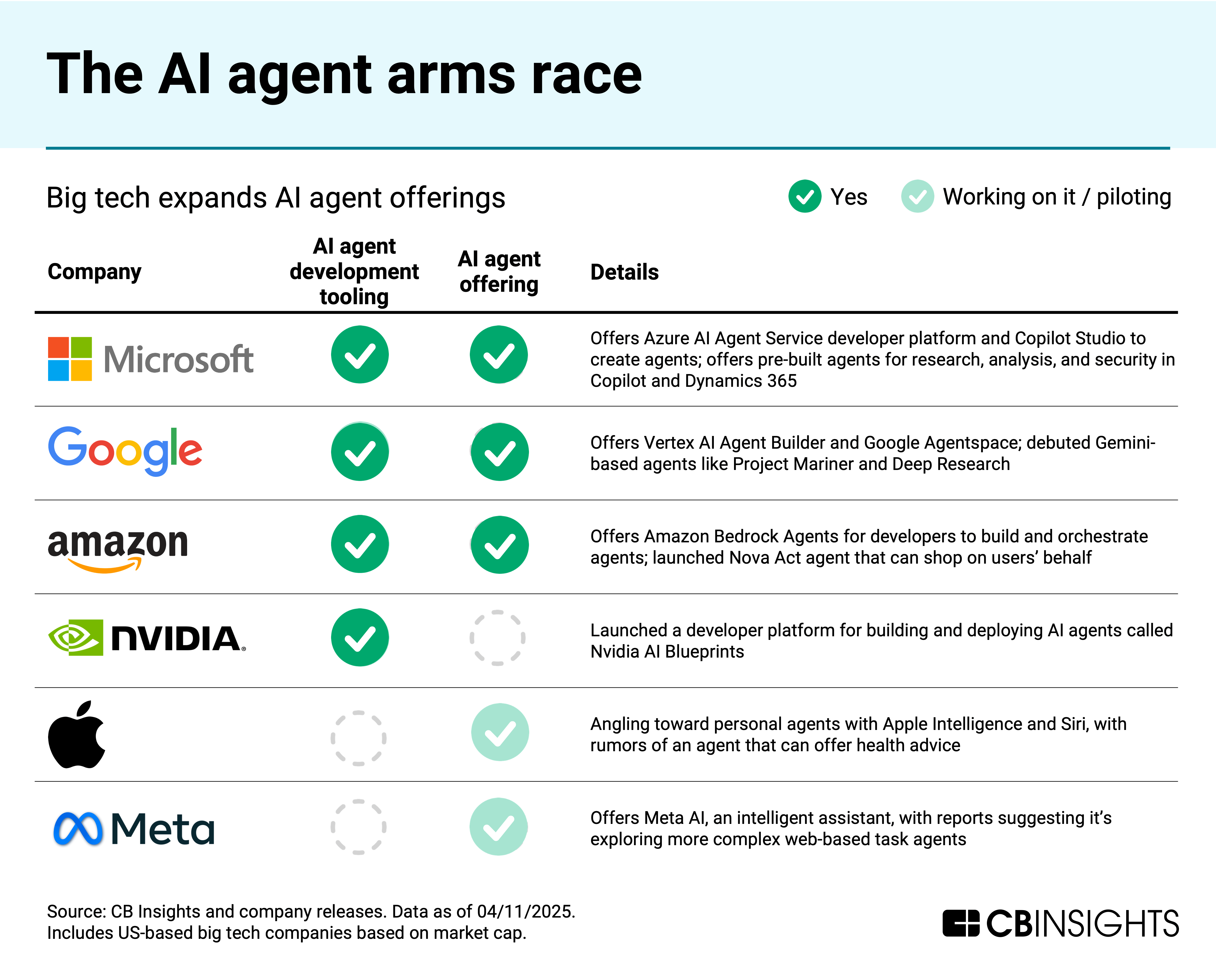 Big tech is getting in on the ground floor — each company is developing agents or building the tooling for them.